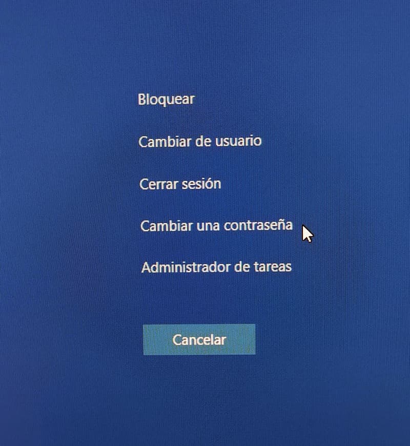 - Per canviar-la, premerem CTRL + ALT + SUPR del teclat i accedirem a la següent pantalla: