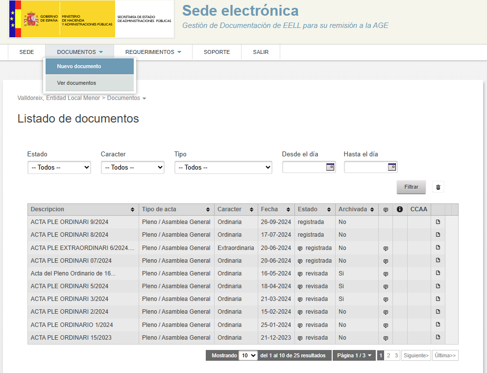 • Buscarem l’apartat “Gestión de documentación…” tal i com surt en la següent imatge